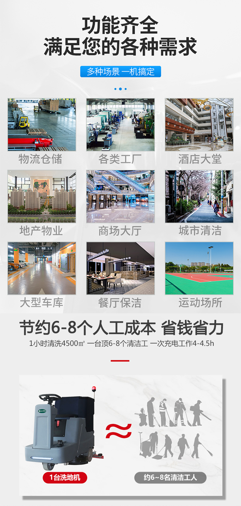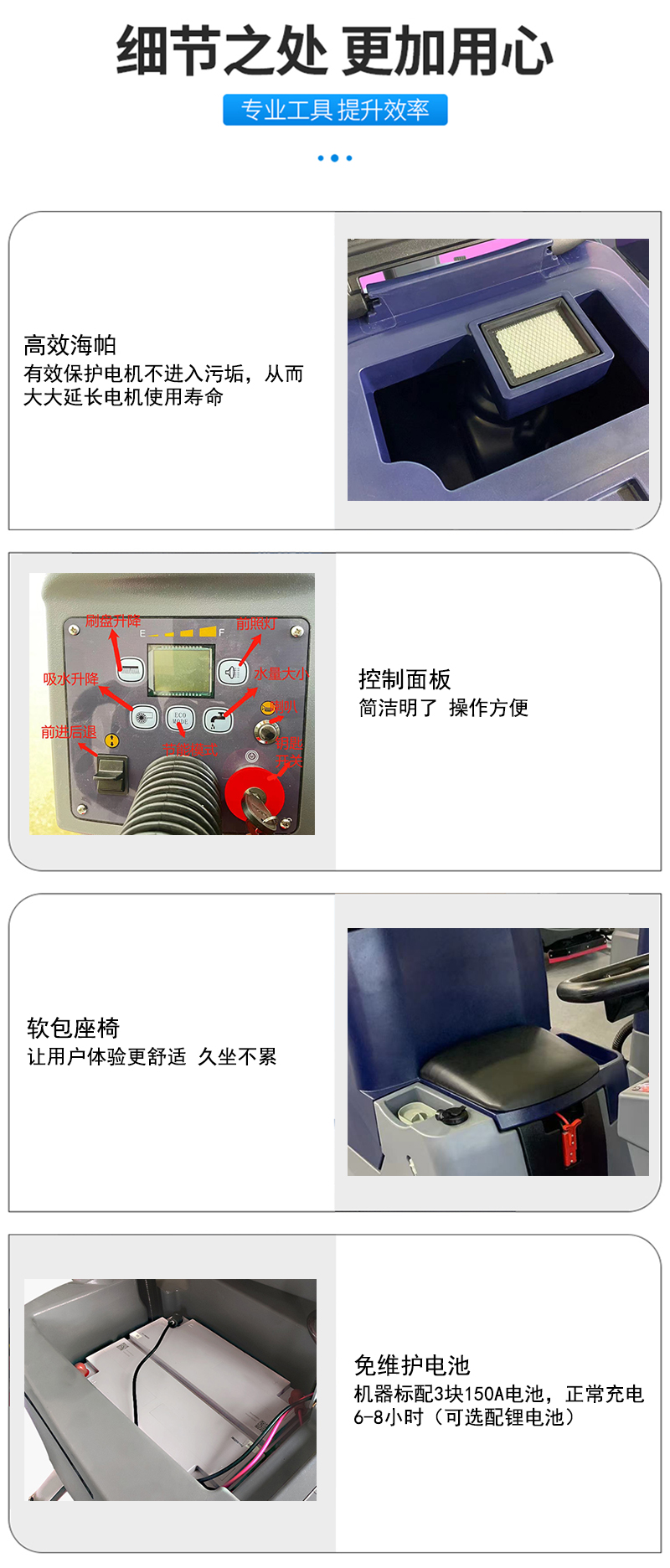 特点:双刷盘超大水箱驾驶式洗地机,升降系统采用推杆电机,一键式操作,简单方便快捷;带有ECO模式,节能降噪。集成式控制电路,配有故障代码提示功能;空间大,操作更加舒适便捷。适用区域更广泛。配置:3*8V150AH免维护电瓶15寸刷盘或针盘2个智能充电器一个